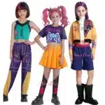 התחפושת מבוססת על דמויות צבעוניות ומלאות אופי, שכל אחת מהן מביאה סגנון ייחודי משלה. זואי, מירה, רומי והאנטריקס מייצגות עולם של הרפתקאות, חברות ודמיון, מה שהופך את התחפושת לאטרקטיבית במיוחד עבור ילדות שמתחברות לסיפורים, משחקי תפקידים ודמויות חזקות. הבחירה בדמויות מוכרות מעניקה תחושת חיבור מיידית ומעצימה את חוויית הלבישה.